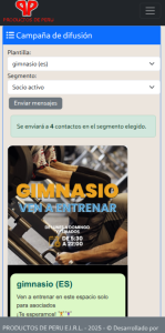 - Envía mensajes personalizados con texto e imagen a grupos específicos de clientes o socios.